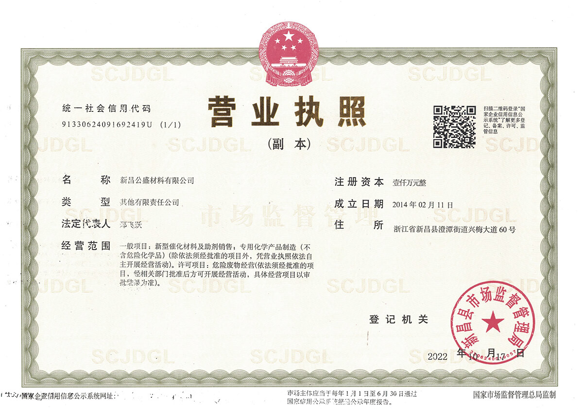 新昌公盛材料有限公司成立于2014年,坐落在江南大佛名城浙江新昌,地理位置優(yōu)越,交通便利,并配備有現代化的廠房和實驗樓,總占地面積80畝。公司聚焦于研發(fā)和生產用于醫藥、農藥、染料、材料等精細化工領域的貴金屬催化劑。目前主要從事鈀炭、鉑炭、釕炭等多項催化劑及醋酸鈀、DPPF二氯化鈀、雙三苯基膦二氯化鈀、四三苯基膦鈀、DBA鈀等均相催化劑的研發(fā)、生產、銷售以及失效鈀、失效鉑催化劑的回收再加工等業務。公司成立以來,一直以提升客戶產品的競爭力為經營宗旨,通過持續(xù)改進客戶所用催化劑的性能,來提高客戶產品的收率,提高催化劑的套用次數,提高失效催化劑的貴金屬回收率,來降低客戶產品中貴金屬催化劑的成本,進而提升客戶產品的競爭力。